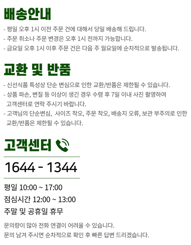 · 발주 마감 후 단순 변심, 잘못 주문, 주소 오류 등 사유로 인한 반품은 제한됩니다. (13시 발주 마감)
