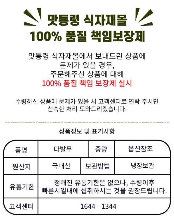 · 발주 마감 후 단순 변심, 잘못 주문, 주소 오류 등 사유로 인한 반품은 제한됩니다. (13시 발주 마감)