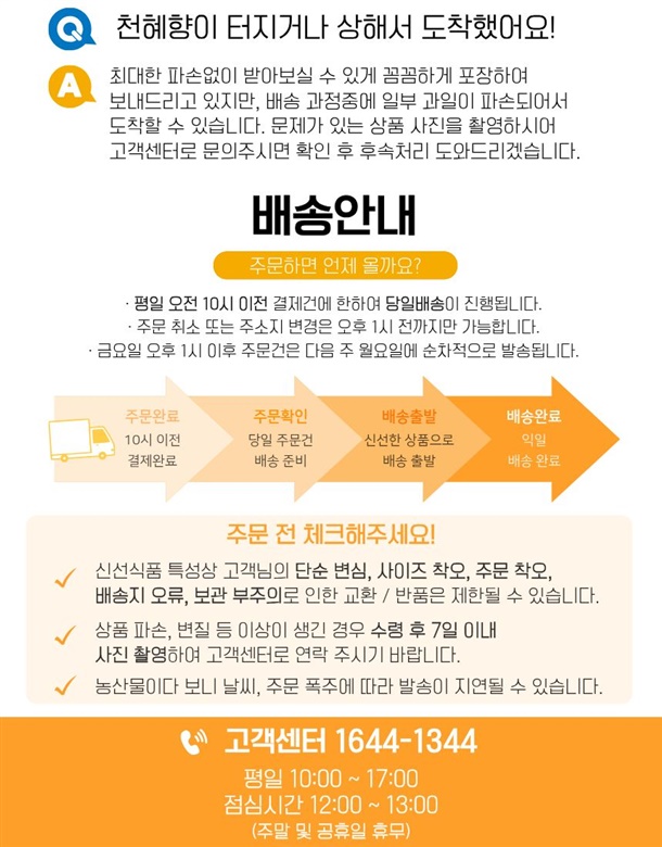 · 발주 마감 후 단순 변심, 잘못 주문, 주소 오류 등 사유로 인한 반품은 제한됩니다. (오전 10시 발주 마감)