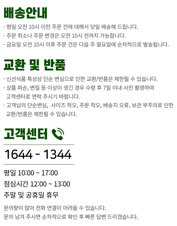 · 발주 마감 후 단순 변심, 잘못 주문, 주소 오류 등 사유로 인한 반품은 제한됩니다. (오전 10시 발주 마감)