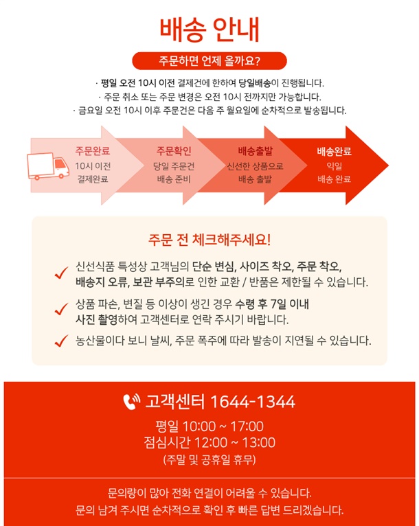 · 발주 마감 후 단순 변심, 잘못 주문, 주소 오류 등 사유로 인한 반품은 제한됩니다. (오전 10시 발주 마감)