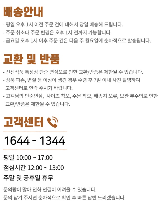 · 발주 마감 후 단순 변심, 잘못 주문, 주소 오류 등 사유로 인한 반품은 제한됩니다. (13시 발주 마감)